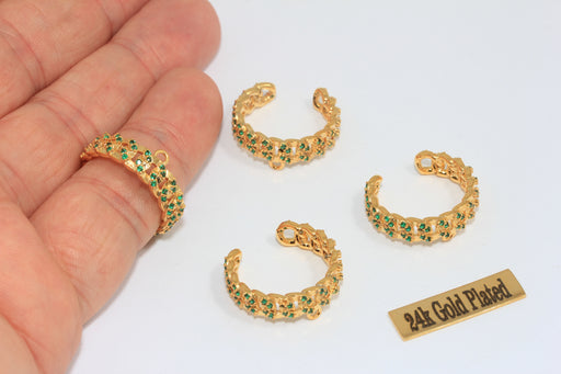 16-17 mm 24 Ayar Parlak Altın Bant Yüzükler, Mikro Döşeme Yeşil Taş Yüzükler, MLS849