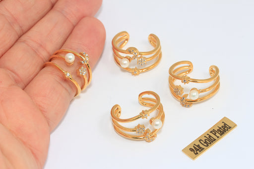 17-18 mm 24 Ayar Parlak Altın Kaplama Yüzükler, Zarif Yüzükler, Kübik Zirkonya, XP248