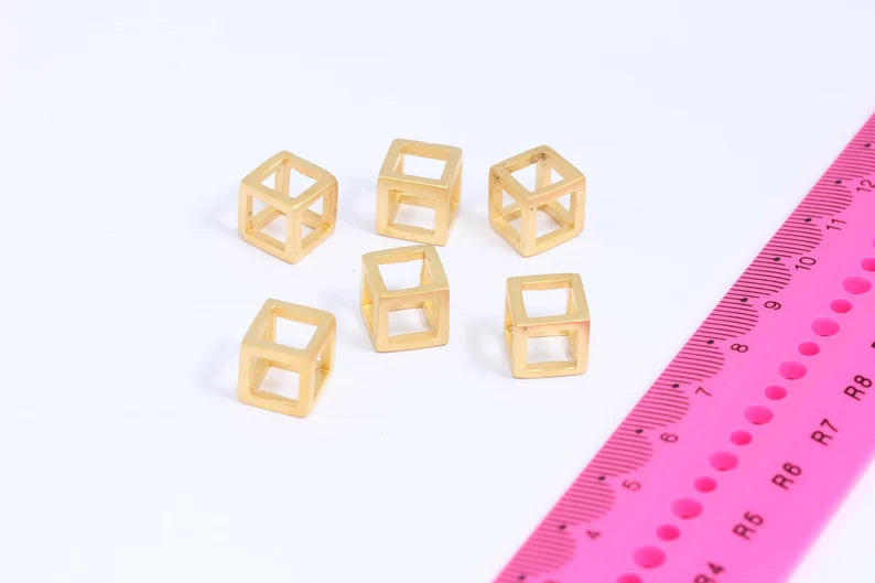 10mm 24 ayar Mat Altın Küp Charms, Küp, Açık Küp, MTE66