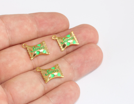 13x15mm 24k Parlak Altın Şekerleme Takıları, Yeşil Emaye, SLM20