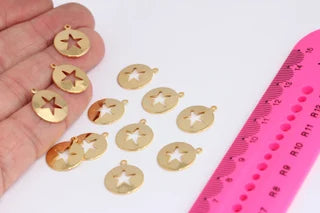 14x16mm 24 Ayar Parlak Altın Yıldız Kolye, Yıldız Kolye, Pirinç MTE359