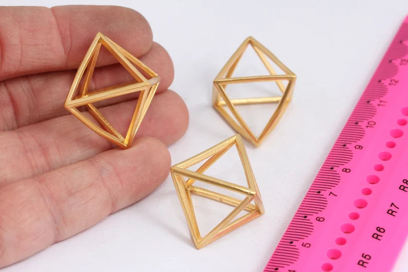 20x33mm 24 Ayar Mat Altın Piramit Kolye, Elmas MTE185
