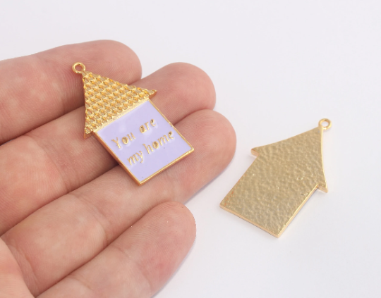 25x39mm 24 ayar Parlak Altın Ev Takıları, Mor Emaye SLM393