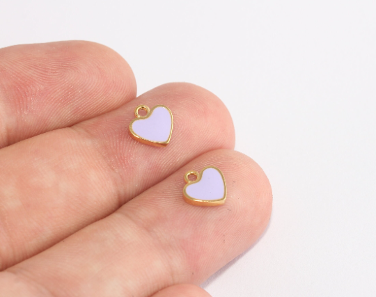 8 mm 24 Ayar Parlak Altın Kalp Boncukları, Açık Mor, Kalp XP456
