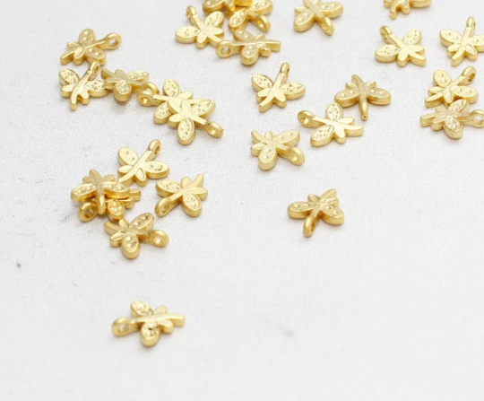 8x10mm 24K Mat Altın Tılsımlar, Mini Tılsımlar, Dragonfly BRT350