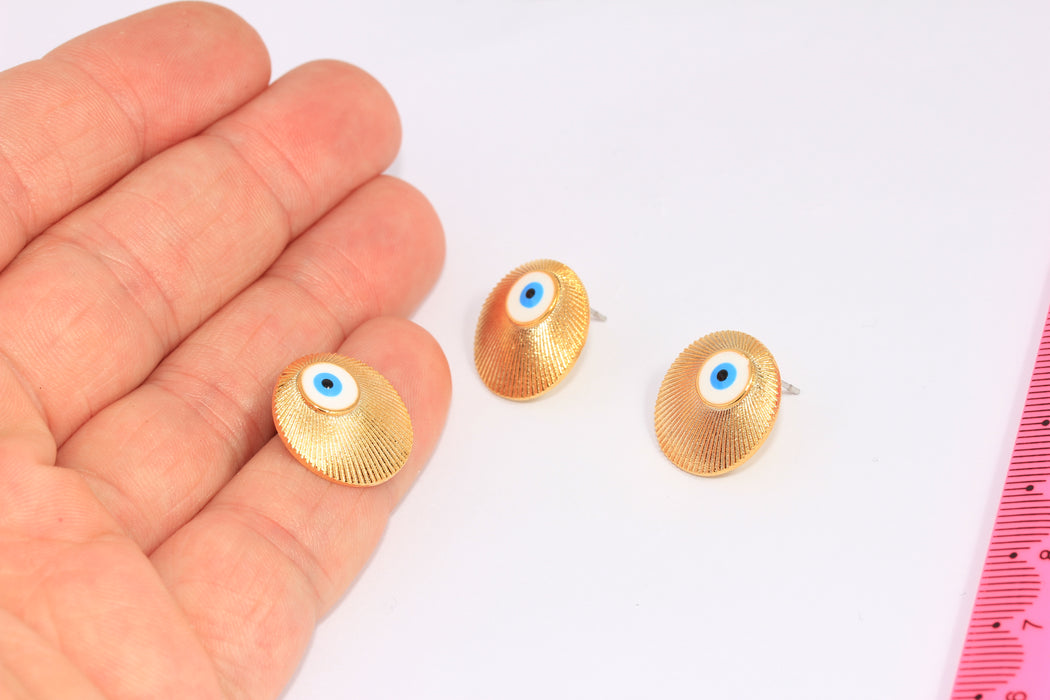 15,5 mm 24 ayar parlak altın nazar boncuğu küpe, beyaz nazar boncuğu küpe, CHK451-2