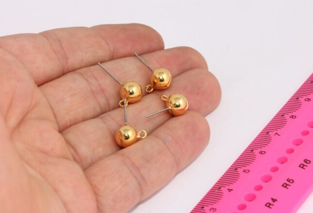 8 mm 24 Ayar Parlak Altın Küre Küpe Uçları, Altın Küpe Ucu, Küre Küpeler, CMR21
