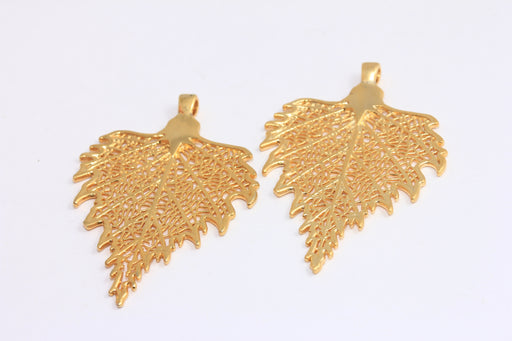 37x55mm 24 Ayar Mat Altın Çiçek Kolye, Filigran Yaprak Tılsımları, BRT615