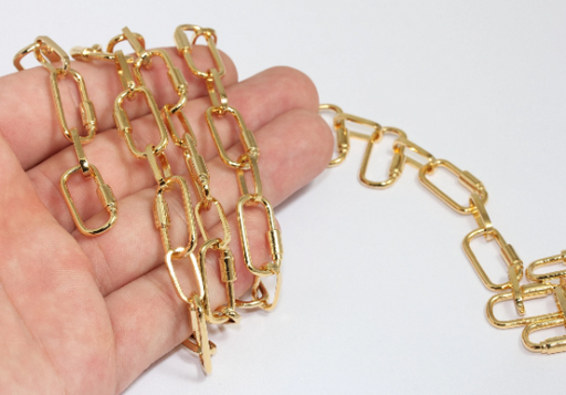11x21 mm 24 Ayar Parlak Altın Bağlantı Zinciri, El Yapımı LLC, CHK603-1