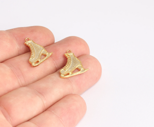 18 mm 24 ayar Parlak Altın Tılsım, Buz Pateni Kolye Ucu, Sport's SLM29