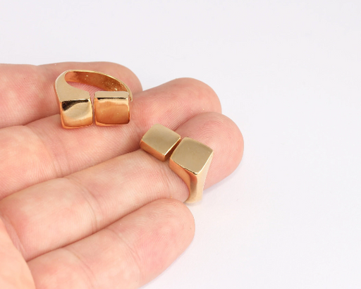 17-18 mm 24 Ayar Parlak Altın Küp Yüzükler, Ayarlanabilir Ayarlar, SLM364