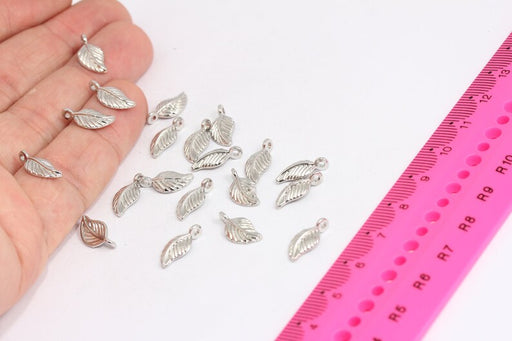 7x14 mm Rodyum Kaplama Yaprak Kolye, Yaprak Kolye, Küçük Yaprak, MTE528