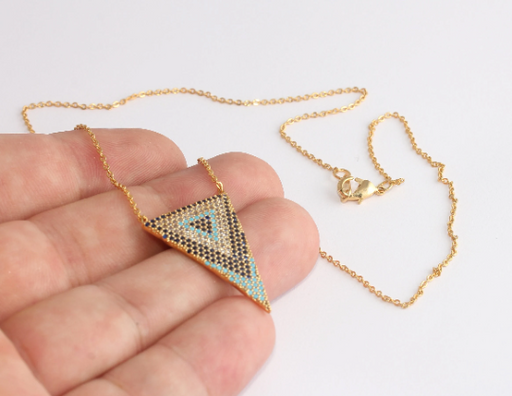 17'' 24 Ayar Parlak Altın Üçgen Kolye, CZ Renkli, Taş, XP421