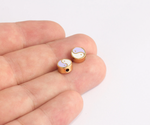 4x8,5mm 24 ayar Parlak Altın Boncuklar, Mine Yin Yang Tılsımları, SLM546