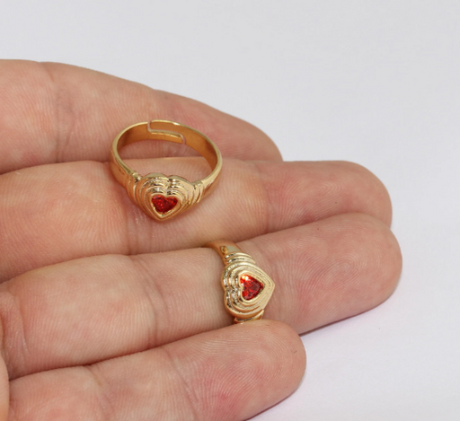 Malzeme : Pirinç İç Boyut : 17-18mm - Ayarlanabilir Renk : 24 ayar parlak altın kaplama Taş Rengi: Kırmızı Miktar : İsteğe bağlı