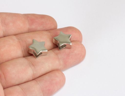 15 mm Rodyum Kaplamalı Yıldız Boncuklar, Büyük Delikli Boncuklar, SLM124