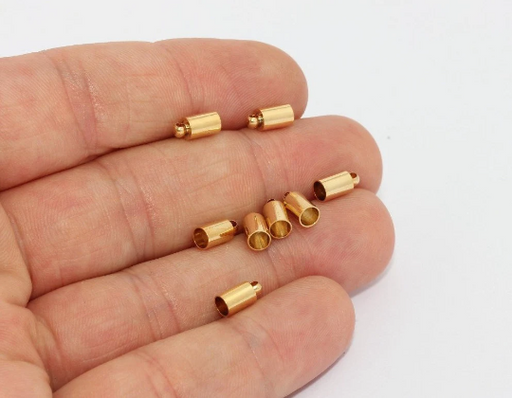 4x8mm 24 Ayar Parlak Altın Boncuk Başlıkları, İç Boyut 3,5 mm, Kordon MTE1156