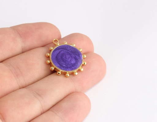 22 mm 24 ayar Parlak Altın Güneş Kolye Ucu, Güneş Kolyesi, Mor, SLM167