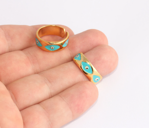 17-18 mm 24 Ayar Parlak Altın Nazar Halkaları, Açık Mavi Yüzük, SLM749