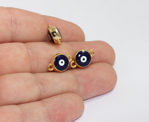 11x16mm 24 Ayar Parlak Altın Nazar Boncuğu, Nazar Bilezikleri, MLS413