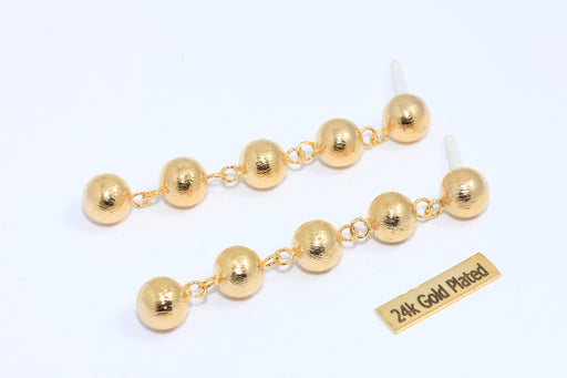 10 mm 24 ayar Parlak Altın Kaplama Boncuklu Küpeler, Kalp Taşlı Küpeler, Altın Küpe, Mikro Taşlı Boncuklu Altın Küpe, Altın Kaplama Küpeler, MLS256