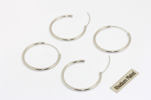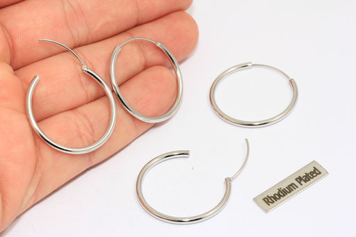 28 mm Rodyum Kaplama Halka Küpeler, Midi Gümüş Küpe Halkaları, HRN5