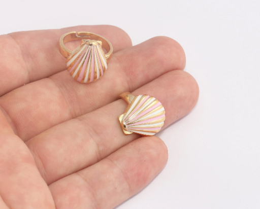 Malzeme : Pirinç Delik Boyutu: 17-18mm Renk : Parlak Altın Kaplama Mine Rengi: Pembe, Beyaz Miktar : İsteğe bağlı