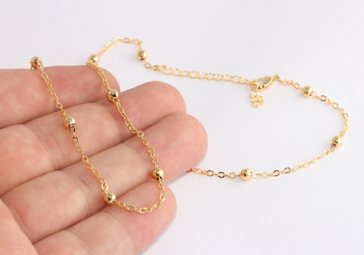 17'' 24 Ayar Parlak Altın Kolye, Uydu Kolye Zinciri, Hazır BXB227