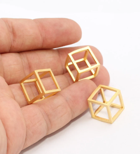 14 mm 24 Ayar Mat Altın Küp Charms, Küp Kolye, Açık MTE65