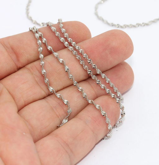 2 mm Rodyum Kaplamalı Kablo Zincirleri, Gümüş Lehimli Zincirler, BXB250-2