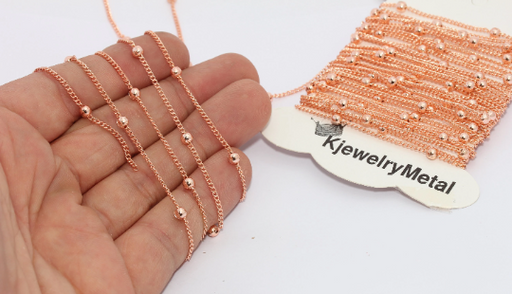 Gül Altın Top Zincir 1,4 mm Lehimli Zincir, Choker Zincir, BXB261-2