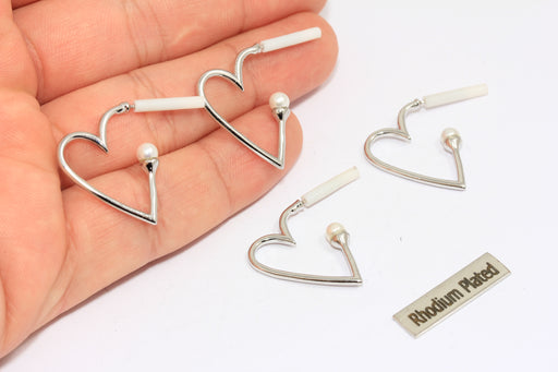 12x13 mm Rodyum Kaplama Kalp Küpeler, Kalp Şeklinde Küpeler, CHK333-6