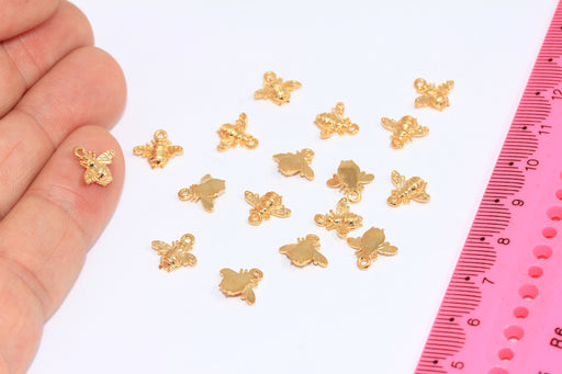 21x26mm 24 Ayar Parlak Altın Arı Tılsımı, Arı Kolye Boncukları, Sevimli Arı Kolye Ucu, FRB91-1
