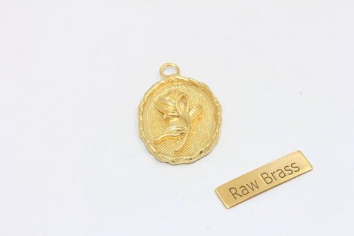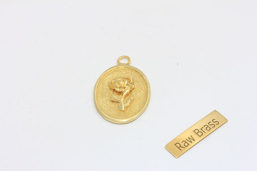 26x30mm Ham Pirinç Madalyon, Gül Çiçeği Madalyonu, Pirinç CHK345