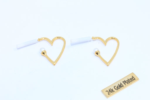 27x29mm 24 Ayar Parlak Altın Kalp Küpeler, İncili Çekiçle İşlenmiş Kalp Küpeler, SLM363