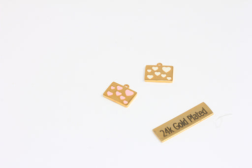 18x20mm 24 ayar Parlak Altın CZ Kalp, Pembe Baget Taş Kalp, KDR42-2