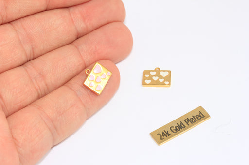 10x17 mm 24 Parlak Altın Zarf Harf Tılsımı, Zarf Kolye Ucu, Mavi Kalpli Zarf, MLS525