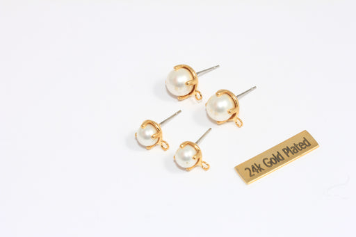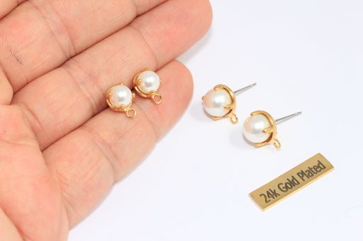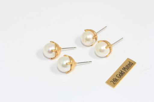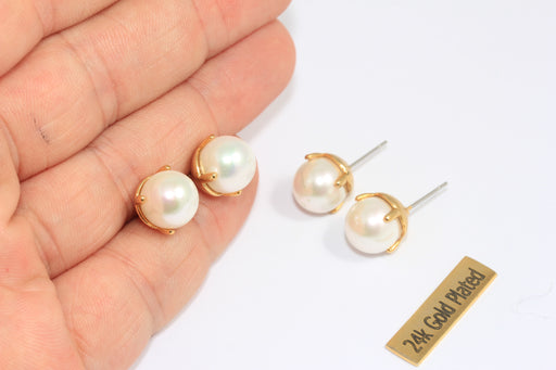 11 mm Parlak Altın İnci Küpeler, Yuvarlak Deniz Kabuğu Küpeler, XP481