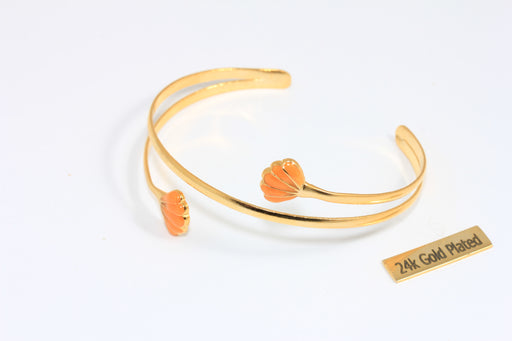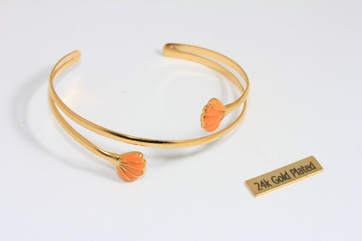 Malzeme : Pirinç İç Ölçü : 17-18mm Renk : 24 ayar Parlak Altın Kaplama Mine Rengi: Şeftali Miktar : İsteğe bağlı