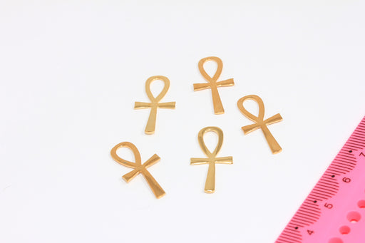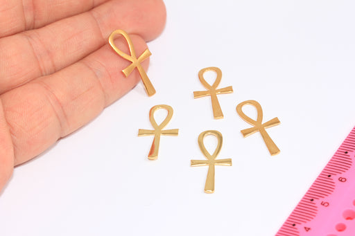 11x23mm 24 Ayar Parlak Altın Kaplama Ankh Charms, Ankh Kolye, Ankh Charm, ROSE337