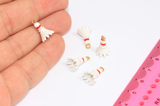 Malzeme : Pirinç Boyut : 16mm Renk : 24 ayar Parlak Altın Kaplama Mine Rengi: Kırmızı Miktar : İsteğe bağlı