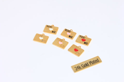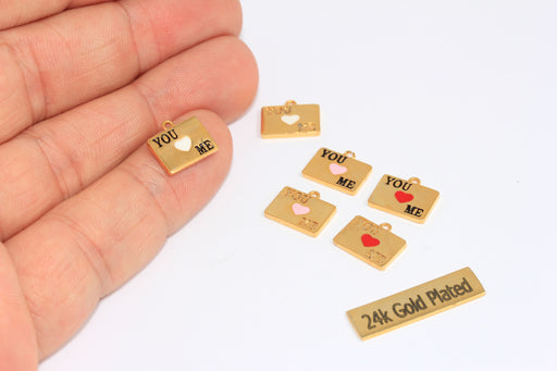 10x17 mm 24 Parlak Altın Zarf Harf Tılsımı, Zarf Kolye Ucu, Mavi Kalpli Zarf, MLS525
