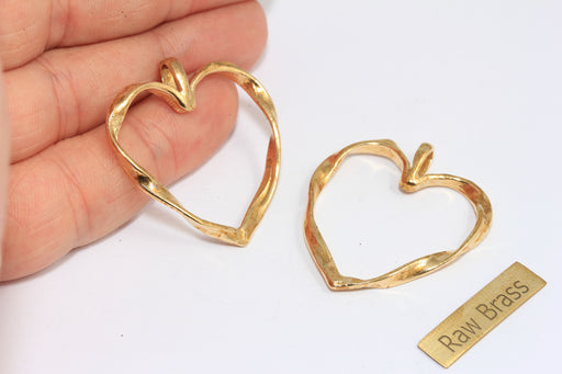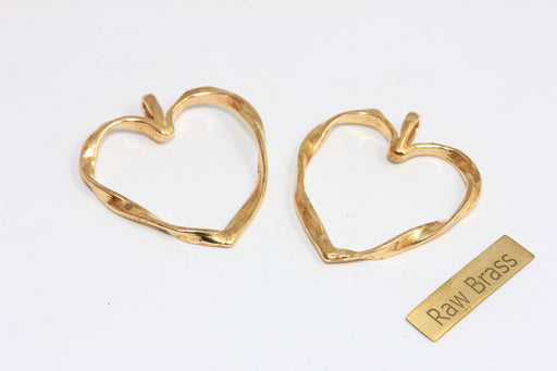 23x25mm Ham Pirinç Kalp Takıları, Çekiçle Dövülmüş Kalp, SLM740