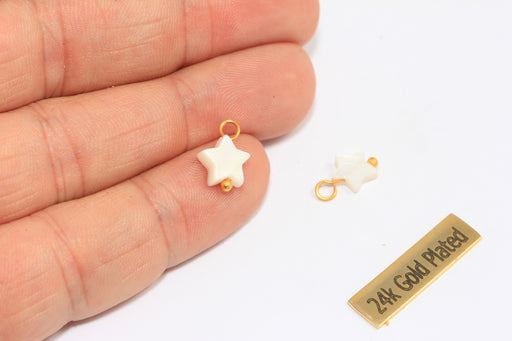 24 Ayar Parlak Altın Yıldız Takılar, Beyaz Mine Yıldız Boncuklar, BXB432-2