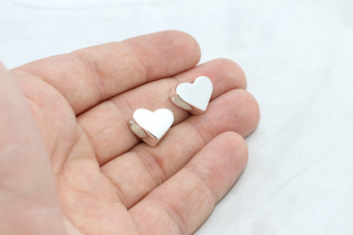 12x15mm Rhodium Plated Heart Beads, Large Hole Beads, Heart Beads, Heart Charms, Bracelet Charms, Beads, Silver Plated Findings, BRT490-12