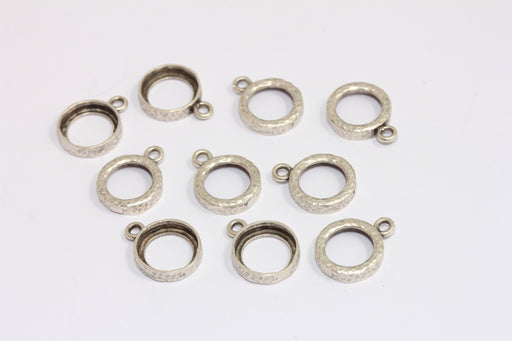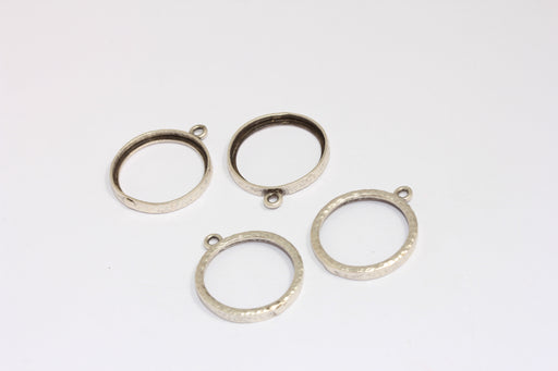20 mm Antik Gümüş Kenarlı Charmlar, Gümüş Anahat Charm, Çekiçle Dövülmüş Yuvarlak Çerçeve Ayarları, Çerçeve Charm, MTE1049