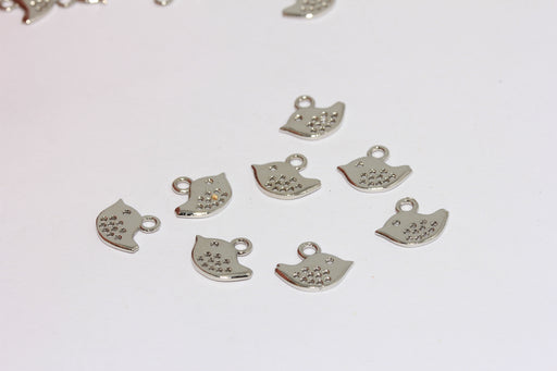 8x10mm Rodyum Kaplama Kuş, Kuş Charm, Küçük Kuş Boncukları, MTE633-1