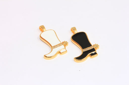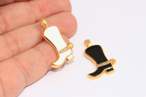 12x20 mm 24 ayar Parlak Altın CZ Bot Takıları, Siyah veya Beyaz Emaye Kovboy Çizmeleri Kolye Ucu, Mikro Döşeme Bot Takıları, MTE693