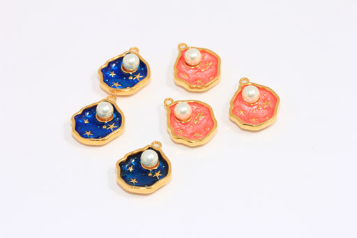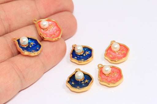 15x17mm 24 Ayar Parlak Altın Deniz Kabuğu Tılsımı, Mine Deniz Kabuğu Tılsımı, Kabuk İçinde İnci Kolye, MTE726
