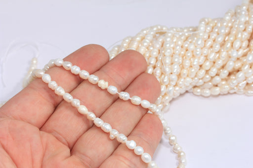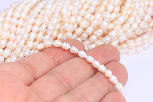 4x6 mm Doğal İnci Boncuk Dizisi, Gerçek Beyaz Tatlı Su İncileri, Patates Oval İnci, Parıldayan Beyaz İnci, BXB466